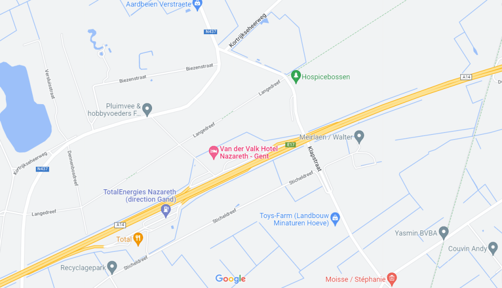 Bereikbaar via afrit servicestation Total E17 richting Kortrijk tussen afrit 8 en 7.